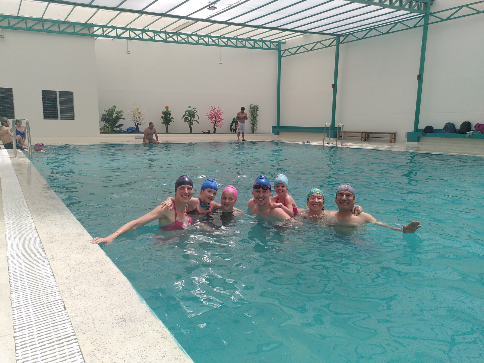 Et aujourd’hui, nous sommes allés nager avec Elena et Carlos à la toute nouvelle piscine de San Jerónimo, juste à côté d’Andahuaylas. Dans le jardin devant la piscine, nous avons tous fait de la tirolienne, après quoi ils nous ont invités chez eux à manger une soupe maison, pleine de légumes (Steph contente !) et du chicharrón de chancho. Le repas était accompagné de chicha de jora, la boisson des incas. Trèèèès bon !