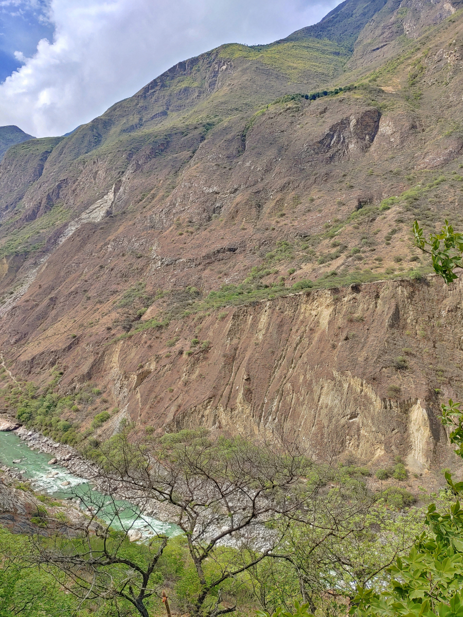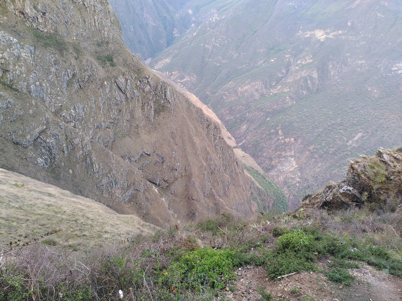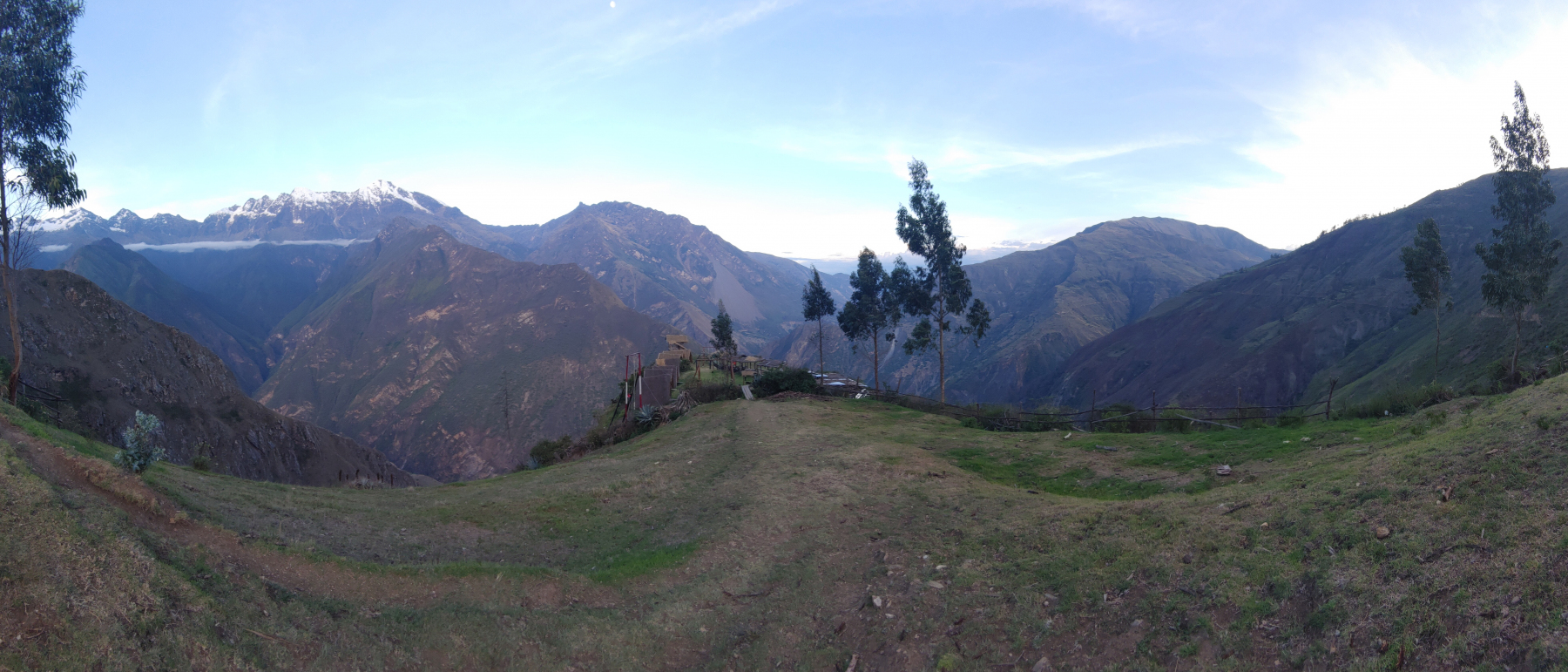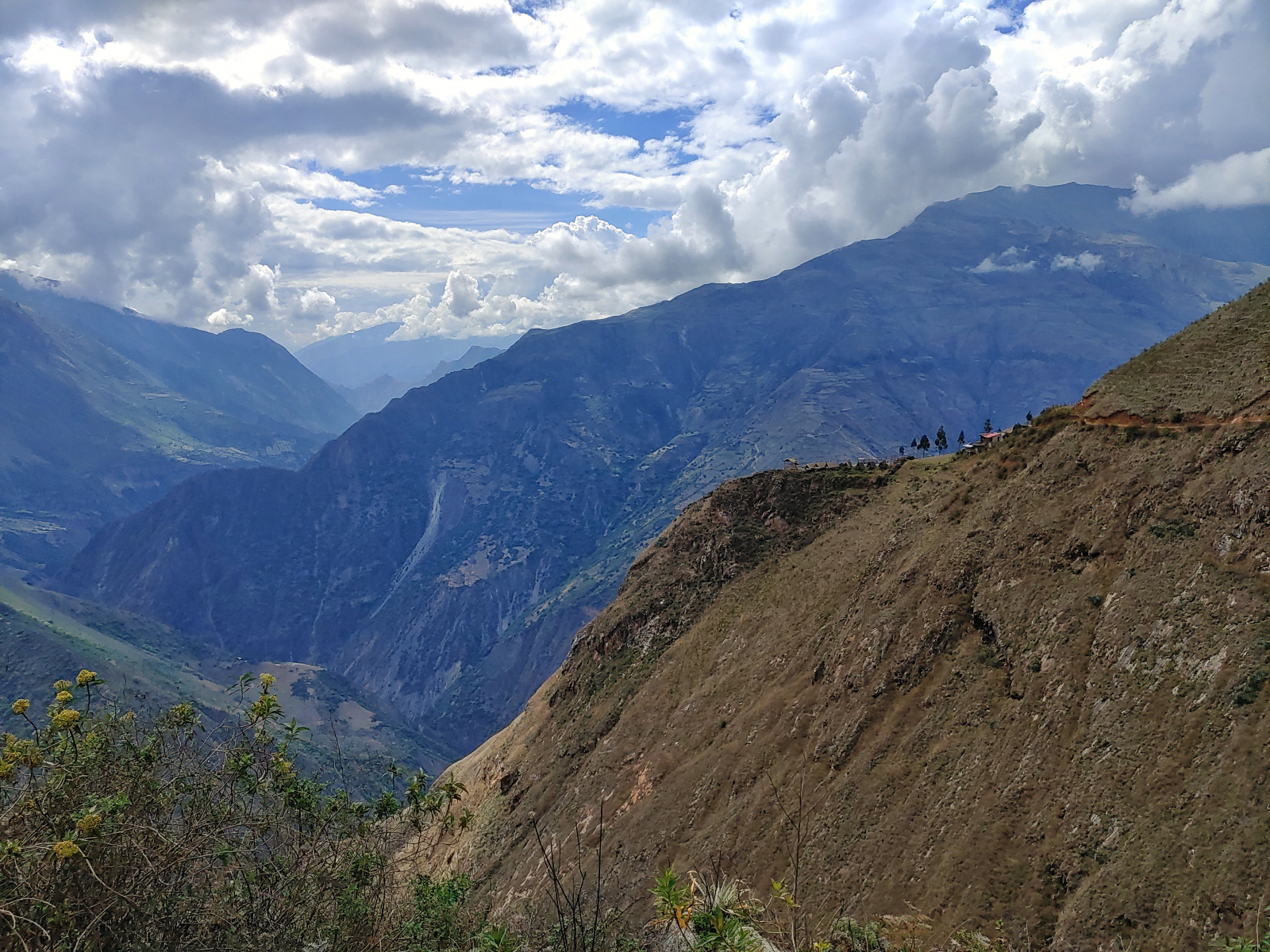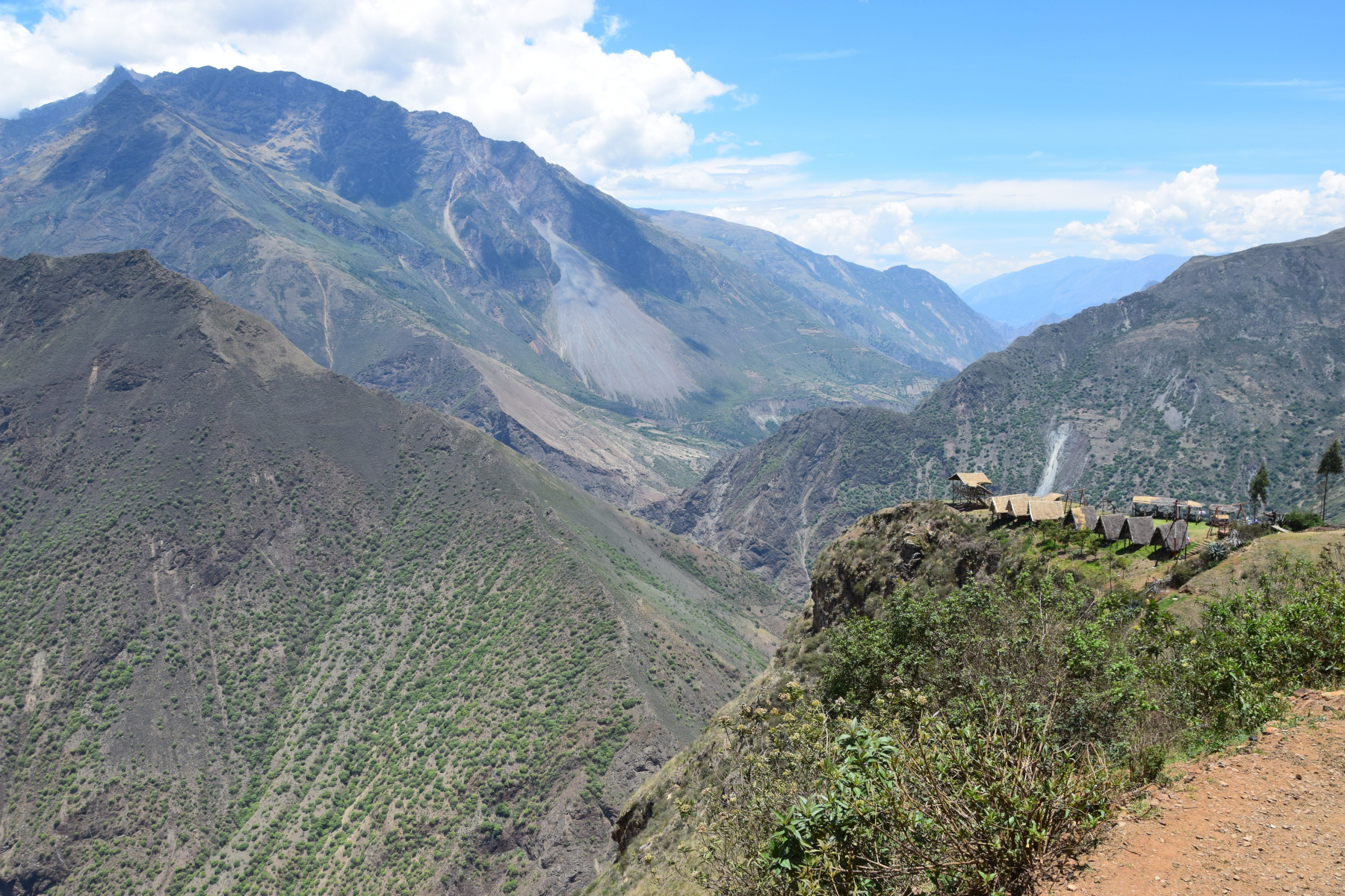 Les 500 mètres de dénivelé positif vers Santa Rosa, l’endroit où nous avons dormi la première nuit, fut pour moi une épreuve d’endurance, de persévérance et de confiance. Depuis Capuliyoc, l’endroit du début du trek, jusqu’à la rivière Apurimac, le point le plus bas ce jour-là, nous avions déjà descendu 1500 mètres de dénivelé. Nous avions mangé le repas de midi à Chiquisca, un petit ensemble de maisons avec épicerie et lodge, presque à la fin de la descente. Nous avons traversé le pont au-dessus de la rivière Apurimac peu avant 15h, puis nous avons entamé la montée en lacets sur l’autre versant, vers Santa Rosa. Dans la descente, nous étions restés groupés avec les mules qui portaient les enfants et celles qui portaient les bagages. Au début de la montée par contre, Nico et moi nous nous sommes vite rendu compte qu’elles marchent beaucoup plus vite en montée qu’en descente. Nous avons d’abord essayé de les suivre pour rester avec les enfants et nos guides, Romulo et son fils Jhoel (10 ans). Très mauvaise idée ! Nous avons entamé la montée à un rythme bien supérieur au nôtre. Le temps de nous en rendre compte, nous étions très essoufflés. Le soleil tapant de l’après-midi ne nous aidait pas. Le chemin montait en interminables lacets sur un versant quasi à la verticale. Nous avions beau nous arrêter et faire des pauses, je n’arrivais pas à récupérer mon souffle ni un rythme cardiaque satisfaisant. Une petite blague un peu mal tombée de Nico a fini de m’achever : « Dis, Steph, ne me refais pas une embolie pulmonaire hein ! En plus on n’a pas pris les injections de clexane avec nous. »