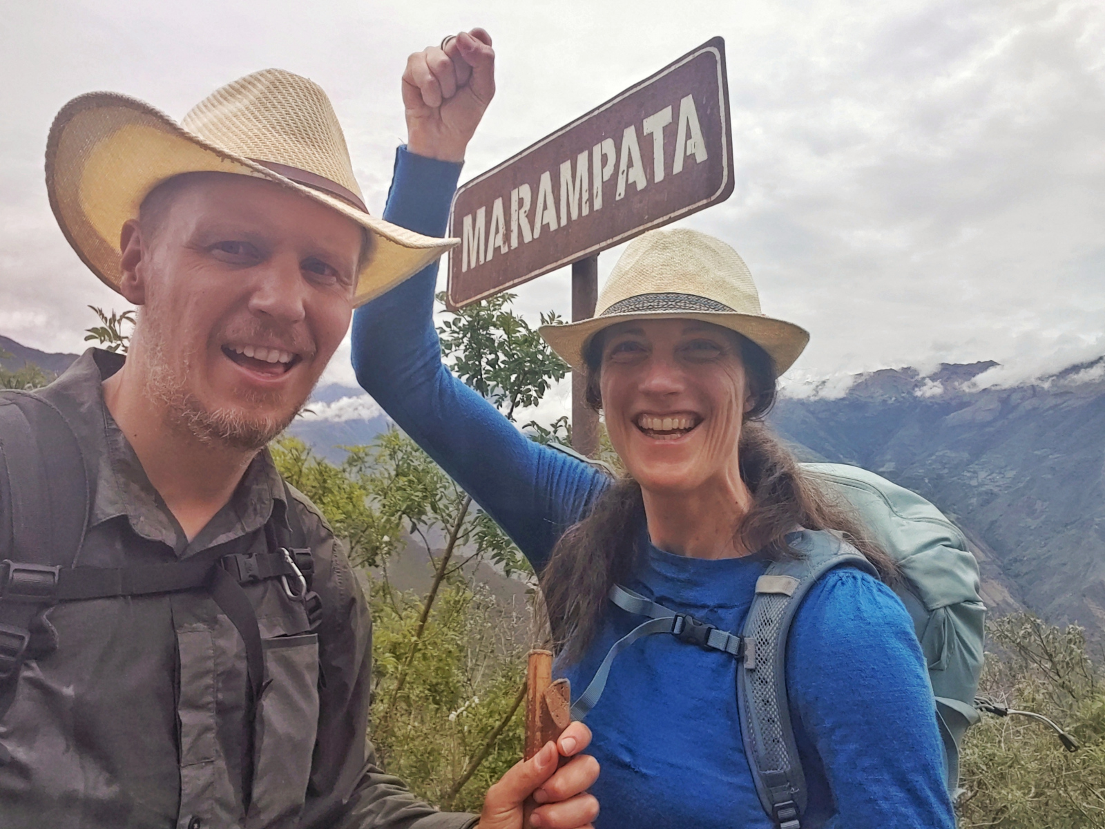 En randonnée, en trek, tout est question de rythme. De trouver son rythme, de le respecter, sans trop vouloir pousser, et de le garder une fois qu’on l’a trouvé. Après, c’est un cercle vertueux : on marche à son rythme donc le corps y trouve son compte, donc on avance bien, sans être dépassé, donc on est motivé, on a envie de continuer, de recommencer l’expérience. Nous savions qu’après la nuit à Santa Rosa, le lendemain nous ne ferions que de la montée, en lacets, sur le même flanc de montagne quasi vertical, jusqu’à l’endroit suivant où nous passerions la nuit : Marampata. En serais-je capable ? Eh bien oui, ça a été, très bien même, et j’ai été capable de toute la suite du trek, à un rythme tout à fait acceptable et avec une grande motivation, un grand plaisir. Comme quoi, dans la vie, ça vaut souvent la peine de persévérer, de dépasser les moments durs, les découragements, les « je n’y crois plus », « je n’y arriverai pas ». On se découvre des capacités dont on ne se doutait même pas.