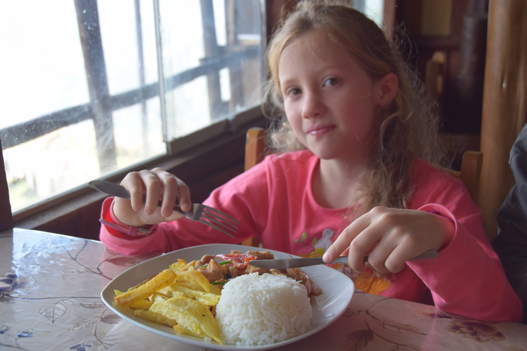 Souvent il n’y avait pas le choix. Nos hôtes dans les lodges et campements cuisinaient en fonction des ingrédients disponibles, ce de qu’ils cultivaient ou de ce qu’ils avaient en stock, transporté par des mules. Donc nous n’avions même pas à nous casser la tête pour choisir. C’étaient tous des repas bons, équilibrés et frais. C’était chaque fois une surprise. C’est tout bête, mais ça me faisait beaucoup de bien.
