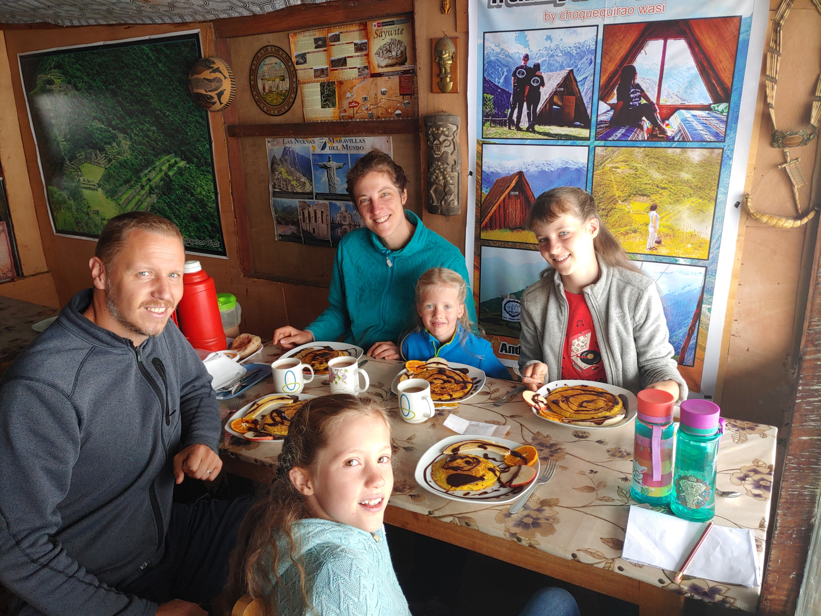 On était crevés chaque jour en arrivant à l’endroit où on allait passer la nuit. Nous n’avions qu’une envie : prendre une douche (froide, pas le choix, mais qu’est-ce que ça fait du bien, en fait !), manger et aller dormir. Pour nous qui avons tant de mal à aller dormir tôt en temps normal (voir mon article sur le sommeil), ça fait beaucoup de bien de côtoyer des péruviens. Notre guide, Romulo, va dormir tous les jours à 19-20h et se lève à 4h du matin ! Rien à voir avec notre rythme à nous ! Et je me rends compte, une fois de plus, que j’adore me lever tôt (au plus tard à 7h pour moi), que ça me donne un entrain, une joie, une énergie que je n’ai pas quand je me lève plus tard. Pour peu que j’aie eu suffisamment d’heures de sommeil… Le seul problème dans la vie courante, c’est que je n’arrive pas à m’en donner les moyens. Pourtant, tout ce que je fais le soir, je pourrais le reporter au lendemain matin tôt.
