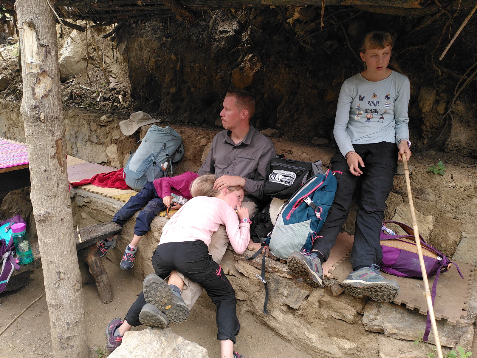 Le doute Le moment le plus dur du trek pour moi a été cette fameuse montée vers Santa Rosa. C’est alors que s’introduit le doute : avons-nous bien fait de nous embarquer dans ceci ? Ne mettons-nous pas nos enfants en danger ? Et nous-mêmes ? Sommes-nous trop ambitieux ? Sommes-nous naïfs ? On a quand même 40 ans, pas 20, ce n’est peut-être plus de notre âge.