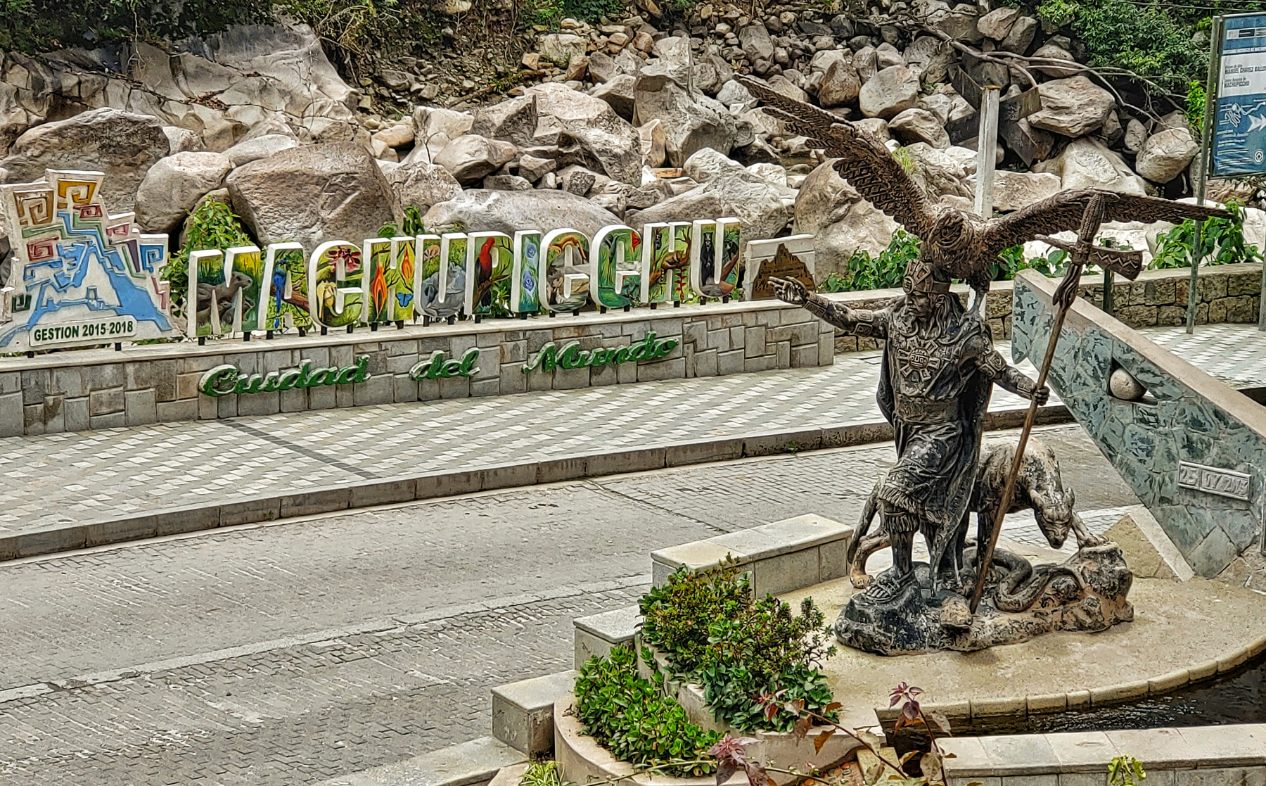 Arrivés à Machu Picchu pueblo (le village au pied du Machu Picchu), nous avons rapidement déposé nos affaires à notre hôtel d’une nuit. Et heureusement que ce n’était qu’une nuit, parce que ça ressemblait à une cellule de prison sans fenêtres – après les dépenses des tickets, on avait privilégié le prix pour cet hôtel. Mais pour 22€ la nuit, à cinq, déjeuner compris, il ne fallait pas s’attendre à mieux. Le reste de la journée fût donc consacrée à découvrir cette petite ville enclavée et escarpée, entièrement tournée vers le Machu Picchu et ses touristes, mais non dénuée de charme. Entre marchands de souvenirs, restaurants chics et chers et les ponts piétons enjambant le Rio Aguas Calientes, l’ambiance y est très agréable, surtout quand le soleil de l’après-midi chasse les brumes humides de la matinée, puisque nous sommes ici à la frontière humide entre les Andes et la Selva, la partie amazonienne du Pérou.