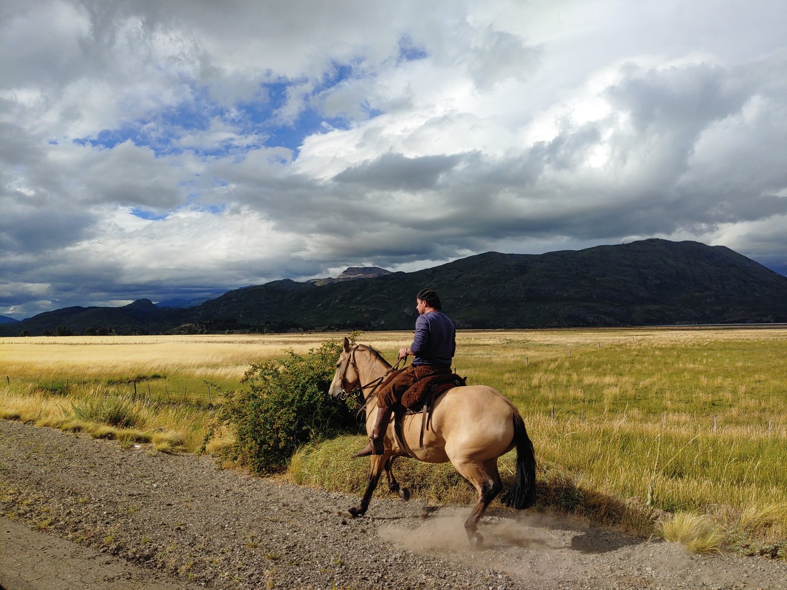 • La cavalcade dans la pampa argentine, rêve de Lucie – et elle était seule sur son cheval et pouvait le conduire ! Une promenade de deux heures dans le décor enchanteur du Parque Nacional Patagonia, le long du Lago Buenos Aires. Parc où nous avons dormi juste après, d’ailleurs.