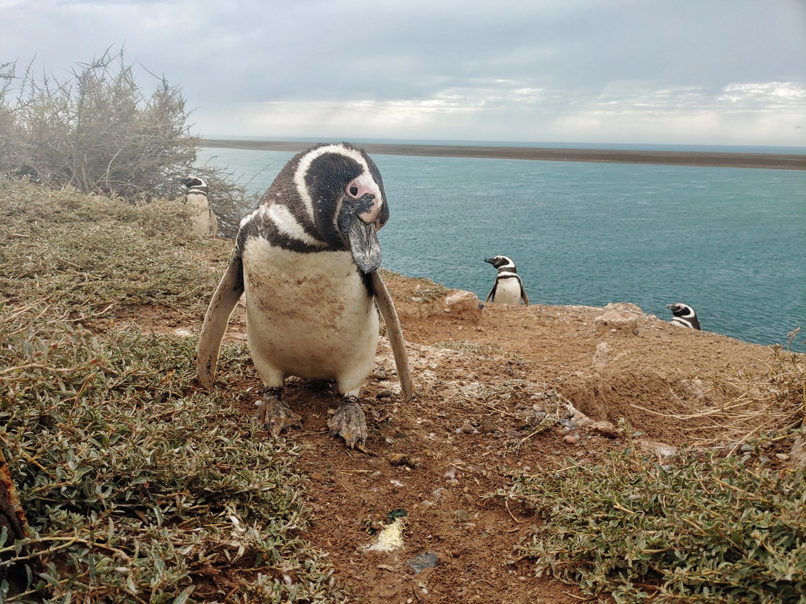 La deuxième sortie, à Caleta Valdés, fût tout aussi lointaine et caillouteuse. On y a vu aussi des lions et des éléphants de mer. Mais cette fois, nous avons aussi vu une pingüinera avec des dizaines de manchots de Magellan qui creusent leurs nids dans le sol (et ils ressemblent comme deux gouttes d’eau aux manchots du cap que j’ai vus en Afrique du Sud – coucou Emmanuel !). Ils sont super marrants, ces manchots ! Dommage qu’on ne puisse pas mettre de vidéos sur ce blog (c’est trop lourd) parce que ce serait beaucoup plus parlant que les quelques photos ci-dessous ! Nous gardons les vidéos pour les victimes parmi vous qui viendront manger chez nous peu après notre retour 😉 Comme nous étions là, nous avons quand même été voir une autre curiosité de la péninsule : une saline, à -23m d’altitude. Elle faisait partie des points « fermés » depuis le covid mais on avait oublié. Alors on est allés quand même 🙂