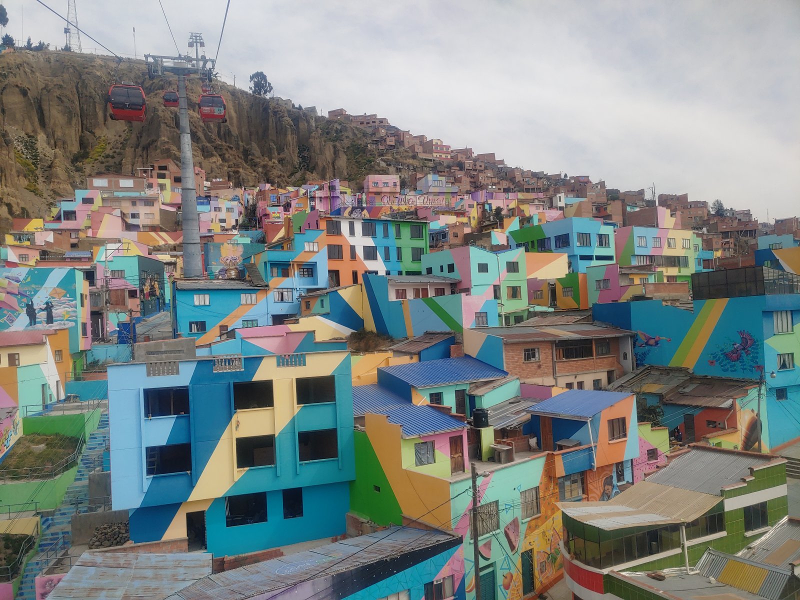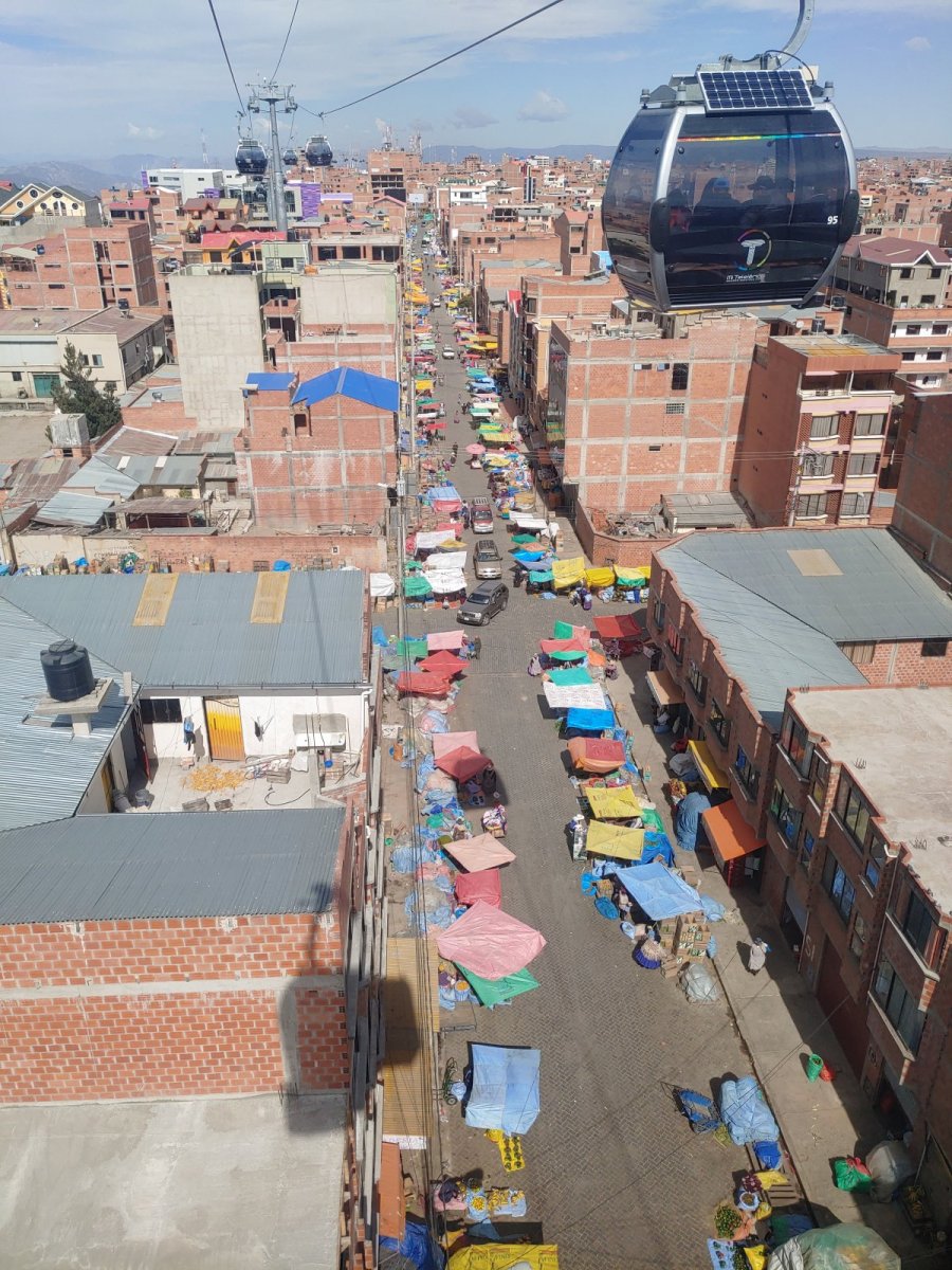 Le plus chouette à La Paz, c’est que les transports en commun ici ce ne sont pas des trams, des bus ni des métros ! Ici, on se déplace en téléphérique ! Il y a dix lignes qui vont un peu partout dans La Paz et El Alto, la ville collée à La Paz. Il y a la ligne rouge, verte, jaune, mauve, orange, bleue, argentée, bleu clair, blanche et brune ! Je n’ai plus grand’chose à dire sur La Paz et ce sera le dernier endroit qui pour le moment est mon préféré.