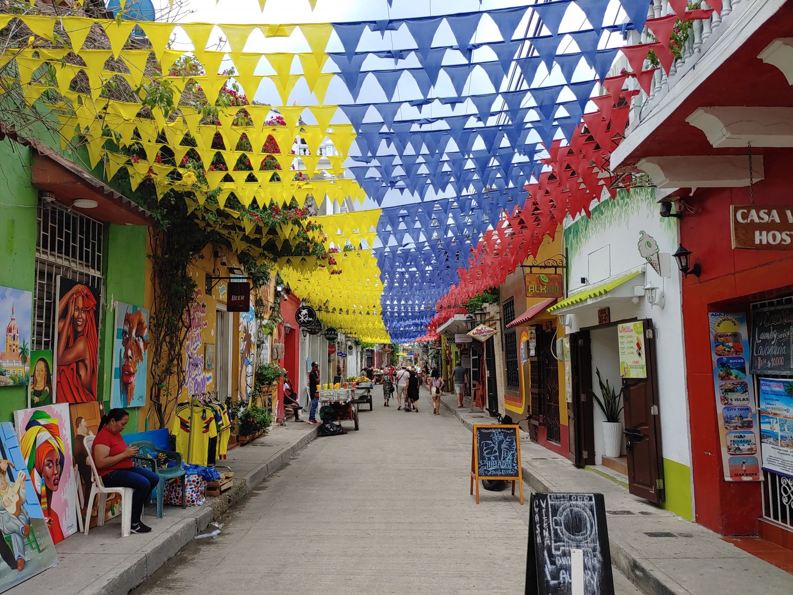 À Carthagène des Indes, on a encore découvert une autre ambiance, avec sa vieille ville coloniale colorée, qu’on imagine facilement au XVIIe siècle, pleine de pirates, de corsaires et de soldats. Façon pirates des caraïbes, quoi ! On y trouve des fortifications (dont San Felipe de Barajas, la plus grande forteresse espagnole construite en Amérique du Sud : 200 ans pour la construire, et finie 25 ans avant que les espagnols ne se fassent mettre dehors 😂), un musée de l’histoire navale de Carthagène et de Colombie, des îles paradisiaques faites de sable blanc et d’eau cristalline (mais dont la visite est complètement schief), sans compter qu’on voit dans les parcs des singes (des pinchés à crête blanche) et des paresseux… La totale ! Et le tout dans une ambiance afro-colombienne, chaude (moins chaud qu’en Belgique ce lundi 18 juillet, mais quand même ultra-chaud), colorée et bruyante.